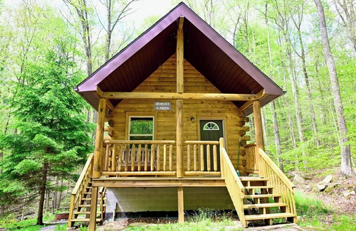 Cabin in the mountains of WV with hot tub overlooking mountain stream. Near all of