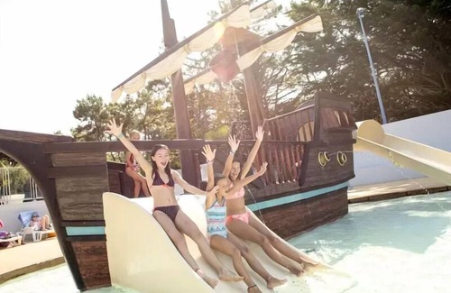 On site, you will enjoy the aquatic complex covered and heated of 1000m2 opened from April with slides, buoy slides, river against current, jacuzzi and pirate boat... as well as 2 other heated outdoor swimming pools (from 05/04 to 02/11) with slides, spa, paddling pool and water mushroom.
