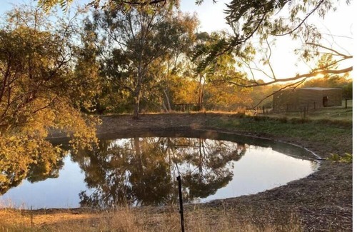 Overlook the valley and dams on the property and take in the view. The site has ample room but limited amenities. There is less shade on the hill than the other two sites but is more accessible for some vehicles.