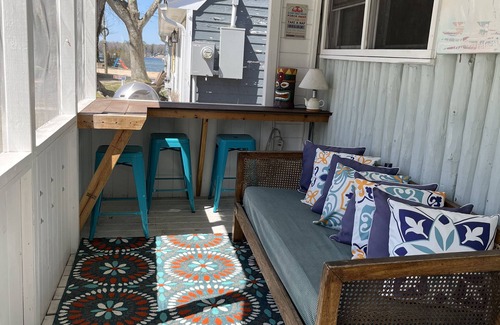 Canary Cottage On Hamlin Lake | Part of Vacation Lane | Furnished Screened Porch | Next to Boating & Beaches | Boat Slip Available on Request | Small space approx. 400 SQFT (cozy) | Part of a duplex with sister 1 Bed, 1 Bath space, Sandpiper (rented separately w/separate entrance). Walking distance to Ice-cream/Ice/Bait shop, boat rentals. Short drive to Ludington State Park and Ludington.