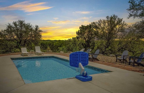 Have we got a family-friendly Hill Country getaway for you! The Cardinal Bluff Retreat near Pipe Creek is a beautiful rental home perched high on a bluff, where the mountain views and local wildlife are absolutely amazing. It sleeps up to eight people (make that twleve with the optional neighboring suite - additional fee applies), and is loaded with amenities and extras you'll be hard-pressed to find anywhere else. There's even a fenced-in yard for your well-behaved pets. It really is like having a resort all to yourself!