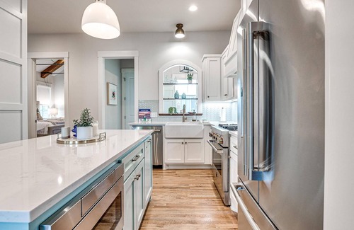 The backyard at The Mont is fully fenced and offers a Breeo Stove with Adirondack chairs plus, you can enjoy grilling outdoors on the gas grill and tossing a game of corn hole!
