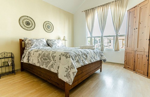 - BEDROOM 1: Master bedroom with California King bed, huge closet and own bathroom. Sleeps up to two adults and a child or baby.