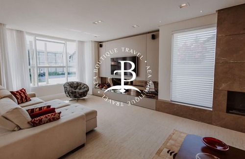 Casa Barbara for vacation with the travel agency AEA Boutique Travel, on Praia de Jurerê Internacional. This luxurious mansion is conveniently located in the heart of Jurerê Internacional, close to shops, beach clubs and much more. It has all the amenities for families and friends traveling together, it is beautifully decorated and equipped for your vacation in Florianópolis.