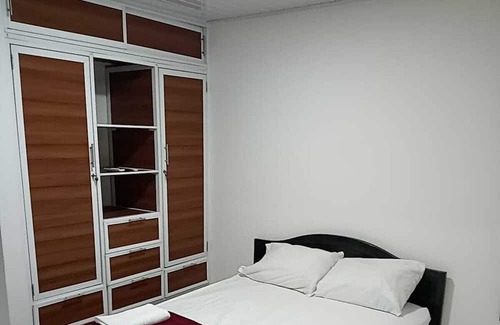 Alcoba No. 1: Podrá encontrar una cama sencilla, con sabanas o ropa de cama, 1 toalla, cobija, ventilador, mesa de noche, extractor de aire acondicionado y closeth disponible para su uso.
