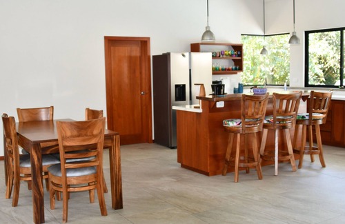 The house is beautifully and thoughtfully designed by a local architect, built by a local builder and furnished with Costa Rican made furniture. From the wooden doors, cabinets, vanities and beds- it's all exquisitely produced by local Tico craftsmen with Costa Rican wood.