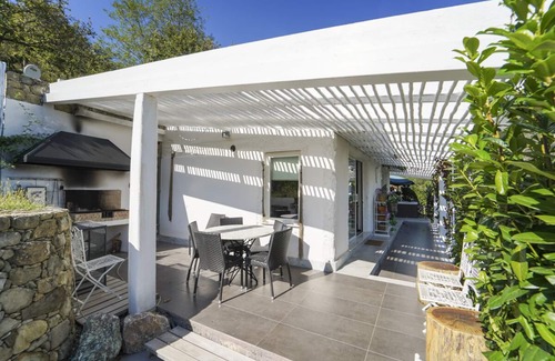 Doors slide open to the gorgeous terraced garden with its own pretty pool and a patio perfect for al-fresco dining by the barbecue with picturesque views of rolling hills. Read a book in the sunshine, enjoy an espresso in the shade or dip into the outdoor hot tub, a true touch of luxury in this inviting and charming home.