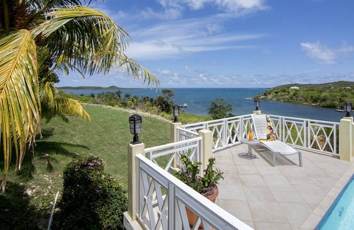 Only steps away from the gorgeous turquoise waters of Non Such Bay, with uninterrupted and outstanding views of the Bay sitting on a three quarter acre plot is Cashmere Villa. Located next door to Villa Sehil, Cashmere is a 5000 square foot villa. Sip a cocktail while lounging in the sun on one of the cushioned sun beds on the terrace , while you face the turquoise waters of the sea ahead. Afterwards, go for a swim in the uniquely designed infinity pool, then keep things simple with a casual barbecue, you can dine alfresco under the shaded portion of the terrace. Also included with the rental are the services of a housekeeper, private chef and a concierge agent to organize all your needs. From the patio, you can step into the villa’s living room which features a neutral color scheme, open-concept design and exotic accents. Here you can relax on the plush sofas and watch TV. Just behind the sofa is the interior dining area that flows into a kitchen that is fully equipped with appliances ranging from a dishwasher to a blender for fresh fruit smoothies. The villa’s four individually decorated bedrooms will comfortably sleep up to eight guests, and children are also welcome here, making it an ideal spot for families. All rooms include air conditioning, ceiling fans and private en-suite bathrooms with showers. In the master suite and bedroom 3 you’ll find a king size bed, while bedroom 2 has a queen size bed and Bedroom 4 has two twin beds which can be converted into a king. One of the villa’s best highlights is that it’s located directly on the Waterfront with a two minute walk down to the beach , where you can soak in the sun while lying on the sand, or swim to your heart’s content. It’s also only a two-minute walk to Harmony Hall and Non Such Bay Resort, and a 10 minute drive to Half Moon Bay.