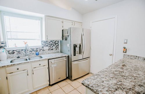 * Premier partner property* Family Friendly house with room for 6. King bed in primary room, queen bed in second room and a pull out twin trundle in the third. House is 10-15 minutes from downtown and is also very close to wedding venues in the Hill Country. There is a large shopping center within a five minute drive with everything you need. Restaurants and bars also close including the new "Menchaca district" huge outdoor very fun bar scene less than ten minutes away. Great location!