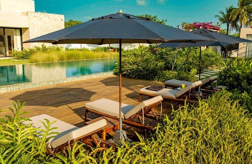 This 3100 m² villa boasts a stunning pool, a personal gym, and a spa area, all set in a tropical garden that exudes serenity. Your stay will be enhanced by the daily services of a housekeeper and gardener, ensuring a worry-free retreat in the true epicenter of comfort.