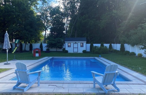 Large brand new heated pool in center of Jamesport. Close to all the vineyards, beaches and restaurants. House nearing final renovation with all new furniture and fixtures. New photos to be uploaded soon.