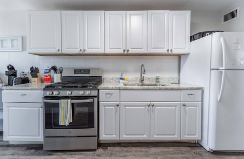 Central Bliss Retreat! Unwind in our 2nd-story remodeled 1-bed, 1-bath apartment. 💖 Experience convenience, comfort, and endless possibilities! 👑 Queen bed, twin daybed, and rollaway - perfect for families. Enjoy discounts for weekly & monthly stays.