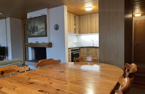 "Chäs Gruebi Apt.S", 4-room apartment 108 m2 on 2nd floor. Comfortable and cosy furnishings: living/dining room with 1 sofabed (80 cm, length 180 cm), 1 double sofabed (140 cm, length 180 cm), open-hearth fireplace, cable TV, radio and DVD. 2 rooms, each room with 1 double bed (2 x 80 cm, length 200 cm), shower/WC. 1 room with 1 bed (90 cm, length 190 cm), 1 x 2 bunk beds (90 cm, length 190 cm). Small kitchen (4 hot plates, oven, dishwasher, toaster, kettle, electric coffee machine, Capsules for coffee machine (Nespresso) extra, fondue Set (cheese)). Bath/WC. Heating. Balcony. Beautiful view of the mountains. Facilities: iron, hair dryer, logs (extra). Internet (WiFi, free). Please note: non-smokers only.
