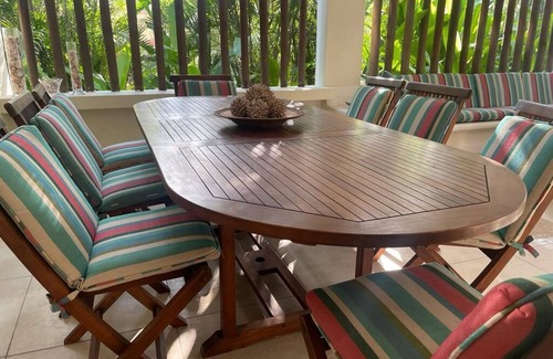 Diviértete con toda la familia en este elegante lugar. Esta es una casa de cinco dormitorios ubicada dentro de un condominio en Chulamar con seguridad y fácil acceso. Tenemos una piscina privada, así como una bañera de hidromasaje, dos bungalows separados y hermosas vistas al océano.
