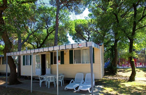 The bungalows are situated near the water (approx. 150 m.), frequently in shady spots. The mobile homes are located near the swimming pool and the tennis courts. High standard accommodation. Covered patio and fireplace. barbeque with the bungalows and garden furniture with the mobile homes. Child's bed 29 per week, to be requested at the time of reservation.