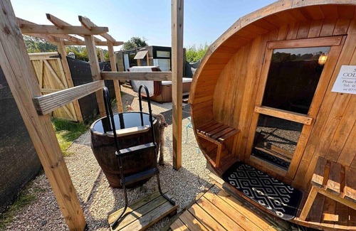 This area is situated near a 4-acre meadow and wood, as well as a Mongolian Yurt and Shepherd's Hut. With free parking onsite, drinking water can be found at the outdoor tap sourced from our very own borehole. The Chalet is only 15 yards from the spa area. We're just outside the village Chackmore with the pub "Queens Head" just a 10 minute walk away.