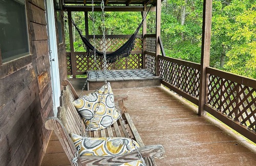 Relax with the whole family at this peaceful place to stay. This beautiful 2 bedroom 1 bath cabin is located 2 miles from caverun lake! Enjoy your stay while seating on the wrap around porch watching the sunset , roasting marshmallows at the fire pit, or enjoy the relaxing hot tub and sauna!! This place has everything you need for your stay, washer,dryer, and free wifi. Comfortabley sleeps 8 people.