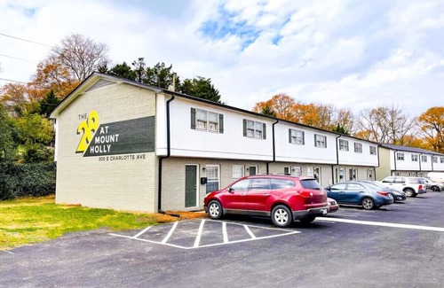 Stay in style in the eclectic city, home to the 2nd largest banking center in the USA—Charlotte. This classy 900-square-foot (84-square-meters) 2-bedroom, 1.5-bathroom apartment features 1 King Bed & 2 Full Beds for your comfort, Lightning Fast Wifi, a Height Adjustable Standing Desk, a Fully Equipped Kitchen, and other Lux Amenities—specially designed for your longer length stays! Step out to a lively neighborhood, in Downtown Mt Holly—steps to restaurants, cafés, bars, and shops!