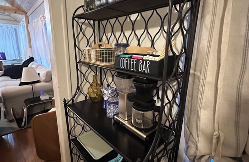 The kitchen is a vintage cottage kitchen with a stove and refrigerator but no dishwasher. There is every pot and pan you would want, a crock pot, toaster and a regular drip Moccamaster coffee pot as well as a Nespresso. We supply regular, decaf and ice coffee pods as well as sweeteners. The marble island is a great space for serving dinner to a crew or for food prep.