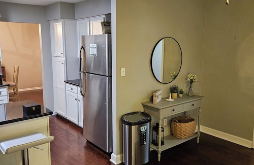 Enjoy your visit to our beautifully renovated house with the perfect blend of comfort and style. A bright airy living room with vaulted ceilings perfect for lounging. There is an open-concept kitchen and dining area, ideal for cooking and entertaining. Spacious bedrooms with ample storage space for your belongings. You will have access to fully-fenced private backyard and a charming patio overlooking the garden, a peaceful spot to enjoy your morning coffee!