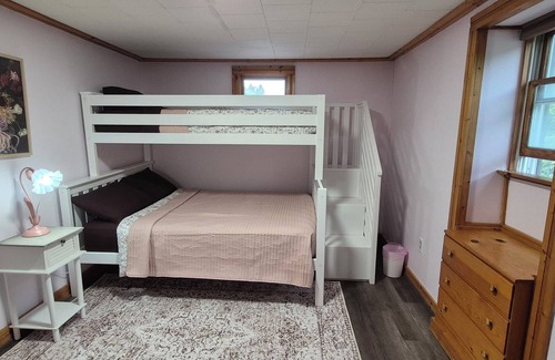 This charming 3-bed, 2-bath vacation rental house in Afton offers stunning views of the river to begin your peaceful escape. This renovated farmhouse is tucked away on the banks of the Susquehanna River, offering easy access to outdoor activities like fishing, kayaking, and canoeing. Take a trip back and finish with a leisurely meal or picnic by the waterfront. A BBQ or bonfire along the river awaits your summertime enjoyment. Bar Room with 85" TV and surround sound and arcade game.