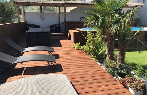access to the pool area (5m50×3m50), UNHEATED, deckchairs, garden furniture, pizza oven, barbecue, plancha with a panoramic view of the sainte victoire.