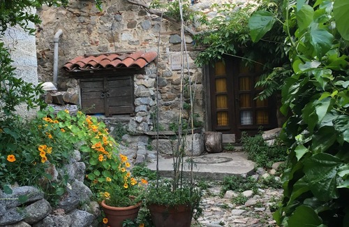 Called Le Grenier (the loft), this is one of 7 comfortable apartments carved out of a 15th-century stone farmhouse (Mas Pallarès). It is fully modernised and tastefully furnished. Its large terrace provides breathtaking views of the complex’s constantly blooming garden, swimming pool, and the Pyrenees foothills. The apartment is in Reynes, a small, sparsely populated Southern French town located near the larger historic market-town of Céret (La “Ville d’Art”), a favourite of artists .