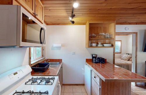 Escape to serenity in this newly renovated cabin nestled in the tranquil mountains of Cobb, California. Perfectly equipped for daily living, your cabin features a full kitchen, heating and a/c, high-speed internet, and a large 4K 55" TV with your favorite streaming apps. Unwind in a comfortable environment that invites relaxation and gives you a true sense of escape.