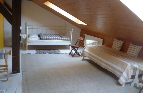 On the last floor (under the roof) very quiet two bedrooms: a double bed and a single bed in one room, three single beds in the other room and a private bathroom. On the floor below separate toilet and a quiet terrace (to relax or smoke).