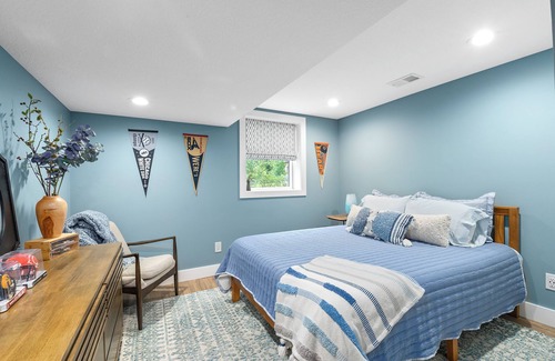 With plenty of room for a foursome to set up shop for the week, or the weekend, this is a perfect home for a golf trip. The basement's full-service bar, complete with huge satellite TV, authentic Golden Tee, and retro arcade games, makes hanging out comfortable and convenient. To enjoy a solitary evening, move outside to the modern paver patio with Adirondack seating and a stone fire ring.