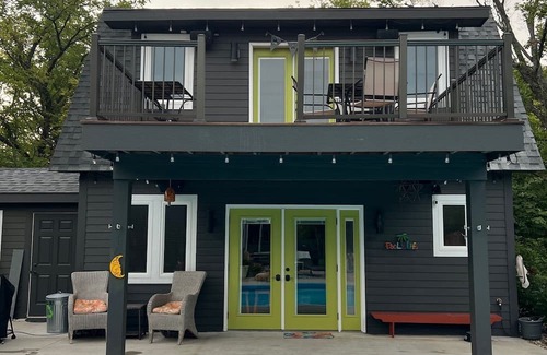 This peaceful cottage in Topeka is a wonderful retreat for guests looking to unwind and relax. With a cozy queen-size Purple brand mattress, this amazing property has everything you need for a comfortable stay - craft ice balls for your cocktails, air fryer option on the stove, deck off the second floor to enjoy the wooded views. The serene atmosphere and charming decor make it the perfect place to escape the hustle and bustle of everyday life. Book now and enjoy everything this cottage has to offer.