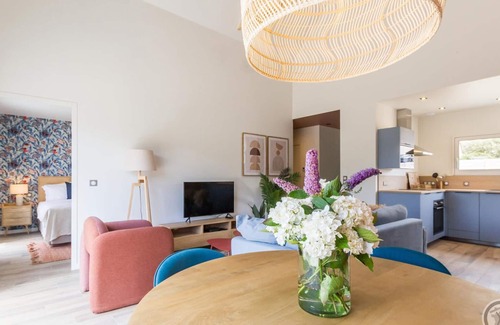 Detached house entirely on the ground floor. Living room (TV, blue-ray DVD, internet) with equipped kitchen (oven, induction hob, dishwasher, refrigerator, microwave, espresso machine) open to the living room. Bedroom 1 (180x200 bed) with terrace access. Shower room. WC. Pantry (washing machine and dryer). Baby equipment on request. Sofa bed in the living room. Sheets and household linen provided. Beds made upon arrival. Cleaning service included. Electric heating (heat pump) included (underfloor). All charges included. Private enclosed garden. Terrace. Garden furniture. Barbecue. Parking. Interim cleaning and linen change are available upon request from the owners. Cross the old bridge with 13 arches that spans the harbor and you will discover the peaceful residential area of Portbail Plage. This small seaside resort has developed on the large sandbank and offers an exquisite setting for your vacation! This is where the six contemporary gîtes of Les Jardins de la Mer were built, nestled between dunes and pine trees. Quite independent, they are remarkably well-equipped and bright. The owners have hired an interior designer to enhance your well-being: a winning proposition! The single-story layout is a definite plus, as is the high ceilings in the large living room. This charming property is ideally located 5 km from Barneville-Carteret. Walking to the large sandy beach (500 m) is a rare and precious pleasure. There is an equestrian and water sports center nearby.