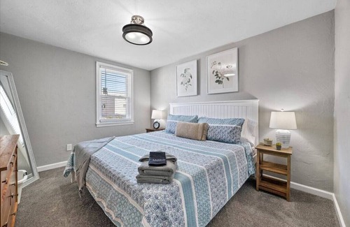 A stylish modern bathroom with a full bath and shower combo is available for your use on the second floor, offering you the choice of a lingering soak in the tub or a refreshing shower. Dual vanities make it easy for multiple people to get ready in the morning!