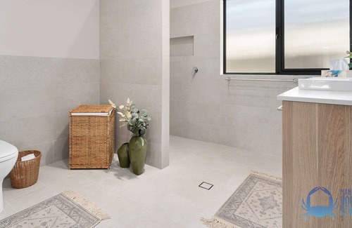 The bedrooms are elegantly appointed, with a Queen bed and en suite in the master bedroom, another Queen bedroom, and a third bedroom with two single beds. The second bathroom features a shower and bath for your convenience.
