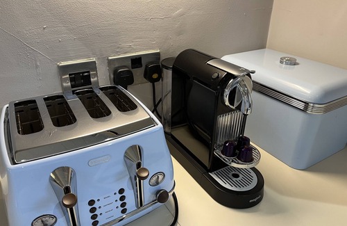 The kitchen is fully stocked & could easily host a dinner party in the unique dining room
