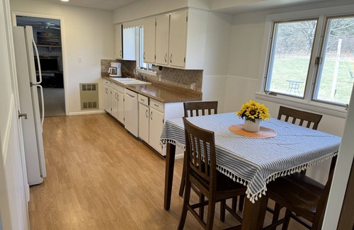 LOCATION, LOCATION, LOCATION! This Clam Lake House is located across the street (no view of the lake) from Clam Lake but only 250' away from a shared dock that you can leave 1 pontoon or 1 small fishing boat during your stay. Please email the manager to see if your boat will fit at the dock. It is conducive to swimming at the dock. Public swimming beaches are located within a few miles. The dock is a partial floating dock and a partial fixed dock (see pictures). A large metal wagon is available to transport your cooler, fishing gear, life jackets, etc….to the dock. Two public boat launches are less than 5 minutes away. There are 3 bedrooms (plus a front room with a Murphy bed and a pull out sofa). The house sleeps 12 people and is great for 2 families or a group friends to share a vacation. Step outside the sliding glass door from the living room to the large patio to enjoy meals and conversation. Jump in your boat and head to breathtaking Torch Lake (less than 5 minutes) or travel to the famous sandbar at the south end of the lake. A propane grill is available on the patio to prepare your summer favorites. The big back yard is ideal for playing catch, bean bags or any other games you bring to enjoy. Bring your favorite books and inside games too. In addition, the Clam Lake Access (shared dock 250’ away) house is perfectly located 6 miles between the quaint villages of Bellaire and Alden. You will be amazed at the diverse activities, shops and restaurants that are available in these villages. After a day on the lake, you can enjoy smores around the campfire and watch the stars come out and if you are lucky see a falling star. Take your boat (5 minutes) and dock it at The “Dockside Torch Lake” to enjoy food and drinks or drive just 1.3 miles to get there. There is a small public beach next to “The Dockside Torch Lake.” You can see some of the best sunsets Northern Michigan has to offer from the dock or beach. You can also see beautiful sunsets and a panoramic view from Torch Lake Cellars Winery (2.3 miles). The winery also has outdoor seating areas (1 under a roof), play area and disc home. Try your luck from a golf tee located onthe outdoor seating area. You might land a golf ball in the bucket in the valley. Glacial Hills (30 miles of hiking and biking) is located 5 minutes away. Primary guest must be at least 25 years old. We look forward to your visit and hope you can experience this “Up North” location every year!