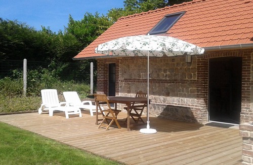 Quietly located near the beaches of Saint-Aubin-Sur-Mer and Veules-Les-Roses (candidate for the contest of the 100 most beautiful villages in France and located 2 km from Sotteville), it has a large wooden terrace of 40 m² with garden furniture.