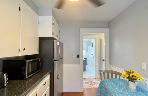 Welcome to Middletown, Rhode Island! Known for its beaches, family-friendly farms, International Polo, and proximity to downtown Newport, Middletown is a lovely place to visit or a slightly quieter location to retreat to when visiting the bustling Newport! The Franklin suite at "Green End Inn" comfortably sleeps 4 adults (parties up to 6 with kids) welcomes families and pets offering 2-beds, 1-bathroom, equipped kitchen, bright living room, and even some outdoor space to enjoy. Plenty of parking for all and just a quick drive or Uber to the beaches or downtown Newport.