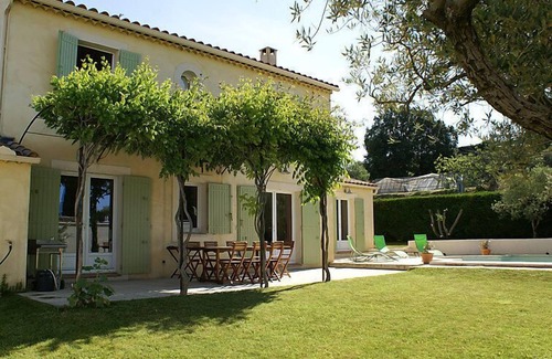 Lagnes 6 km from L'Isle sur la Sorgue: Single-family house "Clos Saint Joseph", 2 storeys. Private: property 580 m2 (fenced), swimming pool (5 x 9 m, depth 100 - 180 cm, seasonal availability: 01.May. - 30.Sep.) with internal staircase. Barbecue. Shop, restaurant 900 m, bus stop "Pont du canal" 1.3 km. Golf course (18 hole) 6 km. Nearby attractions: L'isle sur la Sorgue 7 km, Gordes 12 km, Roussillon 20 km. Please note: car recommended.
