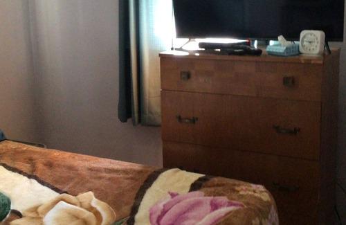 It is a nice one bedroom with a queen size bed with a fridge and a microwave and a table to work on shared bathroom shared kitchen no more than three people at the house at any time there is street parking during the daytime or you can use a shared driveway between two people This is also a non smoking non marijuana house you are not allowed to do it in the property whatsoever