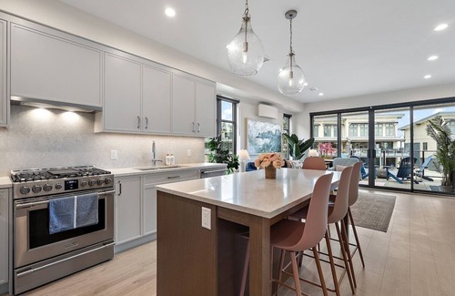 - Large modern chef’s kitchen with quartz countertops, oven, stove, dishwasher, microwave, espresso machine, drip coffee maker, toaster, waffle iron, etc. We’ve worked hard to ensure it is fully equipped, but if we are missing anything, please let us know so we can improve it for your return visit!