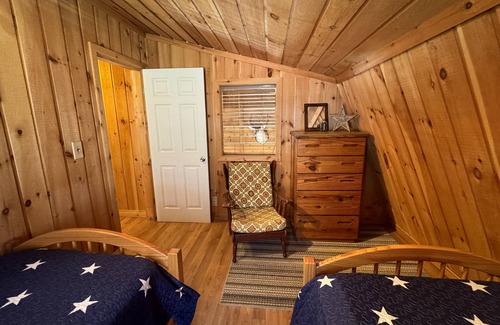 The spacious living room features a vaulted ceiling, fireplace and multiple seating areas. Large over-sized glass doors provide view of scenic hillside and access to the deck. Four of the bedrooms are located on the first floor - each one has a queen bed, a SMART TV with Firestick. One bedroom also has a toddler bed. The two bedrooms on the second floor each have two twin beds.