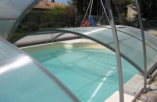 It is covered at half season which heats the water and allows you to take a bath from April until mid October.