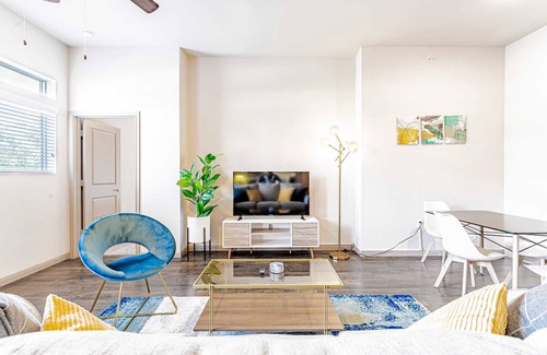 Welcome to your new home in Riverside - a fast-growing and trendy community next to Downtown Austin. Our 1,290 sqft 2-bedroom apartment & comes standard with a kitchen, work space, well-appointed bedroom with king beds, two bathrooms, washer, dryer, free parking & ultra-fast internet to accommodate you in the modern times.