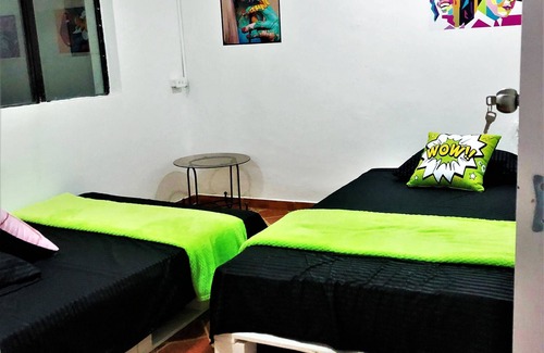 Ubicado cerca a todo en uno de los barrios más exclusivos de Medellín cuartro habitaciones con camas dobles un amplia terraza parqueadero cerrado cocina equipada servicio de lavar ropas Internet wifi sala de tv con television por cable y dos anfitriones dispuestos a ayudarte con guías y concejos para que disfrutes las cuidad y sus alrededores cerca a bares restaurante ingreso las 24 horas .
