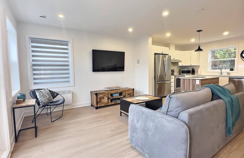 A living room and air conditioning are featured at this 2-bedroom, 1-bathroom rental. Bathroom amenities include a hair dryer, towels, and toilet paper. The kitchen is equipped with an oven, a stovetop, and a refrigerator, as well as a coffee maker, an electric kettle, and a microwave. And because there's a washer and dryer, you can go a bit lighter on your packing.