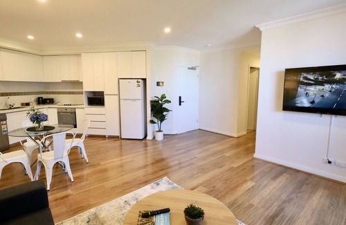 Beautifully appointed brand-new apartment. Everything is new with your comfort in mind. Cook up a storm in your full kitchen, dishwasher, washing machine & dryer, big fridge, AC, Free Wi-Fi. Starter amenities provided. Quality fittings throughout your apartment. One secure car bay. Perfect for family stays, work assignments or a great spot to chill. This luxurious apartment offers guests ample space to spread out with 2 bedrooms, 1 bathroom and an outdoor entertaining.