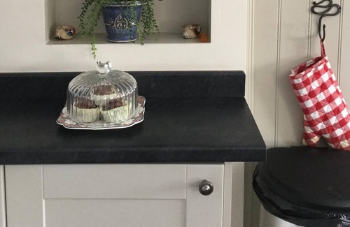 The Stable was converted just 3 years ago. Decorated in New England colours and all on one level its a beautiful place to stay. the Stable is all electric with radiators in each room and also a wood burning stove for those who love a real fire. It is warm in winter and cool in summer . The living space has a full kitchen with cooker, fridge and microwave. A comfortable leather sofa for relaxing in front of the wall mounted TV, and free wifi . There is also a small dining table and 2 chairs.