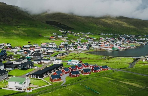 Enjoy the peace and total relaxation in this newly built and cozy cottage, located in a very attractive area in Vágur on Suderø. Fantastic location, between the sea and a beautiful lake. Within walking distance to the west side of the island, with fantastic views of the sea and large cliffs. Close to shopping, wonderful walking trails and sports activities. 15 minutes by car from the ferry. The Faroe Islands' first and only 50 m swimming pool, located near the cottage. Outdoor hot tub for rent.