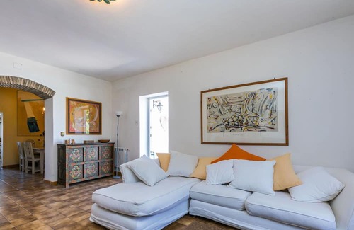 "Quercia", 3-room apartment 120 m2 on 1st floor. Spacious and bright, tasteful furnishings: upper floor: (exterior staircase) large living room with 1 sofabed and open-hearth fireplace (only for decoration), TV and air conditioning. Exit to the terrace. Dining room. 2 double bedrooms. Open kitchen (oven, dishwasher, 5 gas rings, toaster, kettle, microwave, electric coffee machine). Shower/bidet/WC. Gas heating. Heating available only from 08.11. to 07.04. Terrace partly. Terrace furniture. Beautiful view of the swimming pool. Facilities: washing machine, baby cot for up to 2 year olds, hair dryer. Internet (WiFi, free). Please note: private entrance.